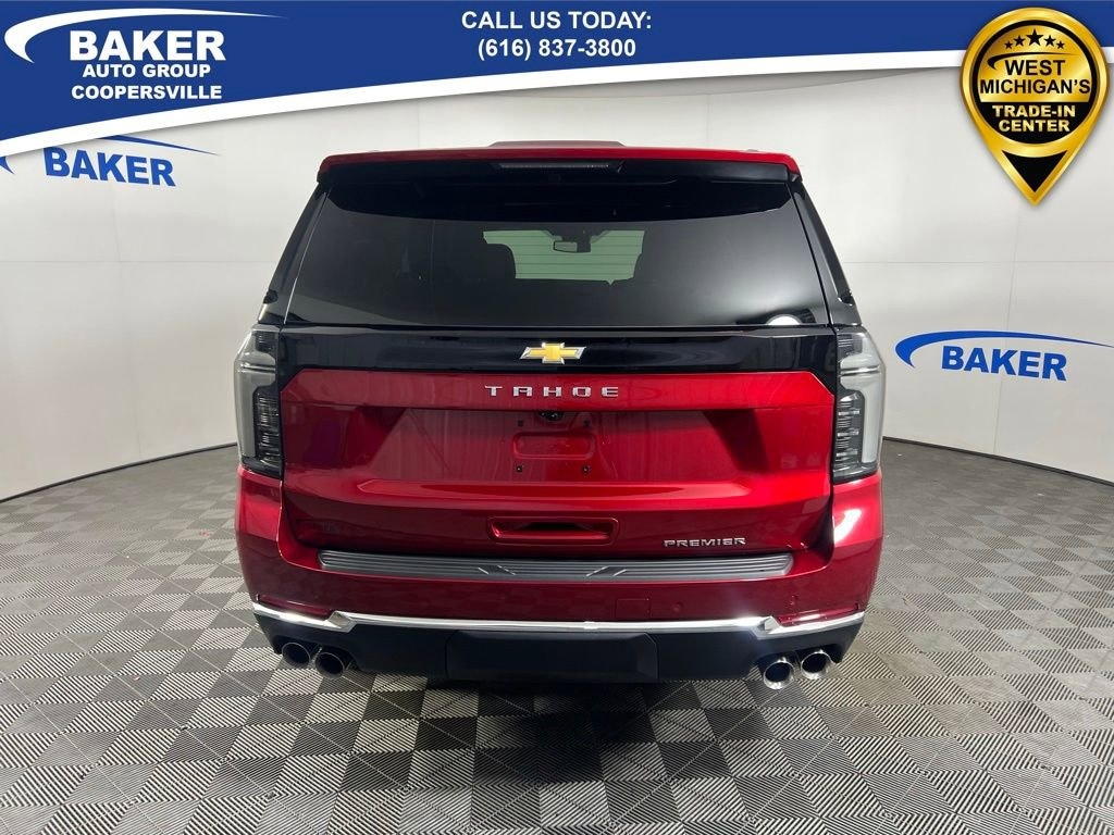 Radiant Red Tintcoat 2026 Chevrolet Tahoe Premier 4WD 10-Speed Automatic with Overdrive EcoTec3 5.3L V8 Tahoe Premier, EcoTec3 5.3L V8, 4WD, Radiant Red Tintcoat, Jet Black Leather, 1st and 2nd Row Color-Keyed Carpeted Floor Mats, 2-Speed Active Electronic AutoTrac Transfer Case, 22 Black Wheels with Selective Machining, 3-Spoke Wrapped Steering Wheel, 3rd Row 60/40 Power-Folding Split-Bench Seat, 3rd Row All-Weather Floor Liners, Advanced Trailering Package, All-Weather Cargo Mat, Auto High-beam Headlights, Auto-Dimming Inside Rear-View Mirror, Automatic temperature control, Blind Zone Steering Assist with Trailering, Bose 10-Speaker Centerpoint Surround Audio System Feature, Bright Front and Rear Door Sill Plates, Chrome Door Handles with Body-Color Strip, Chrome Mirror Caps, Color-Keyed Carpeting Floor Covering, Dual Exhaust System, Dual-Pane Power Panoramic Sunroof, First and Second Rows Premium Floor Liners, Floor Console, Front Bucket Seats, Front LED Fog Lamps, Frontal Driver and Outboard Passenger Airbags, Fully automatic headlights, Heated 2nd Row Outboard Seats, Heated Driver and Front Passenger Seats, Heated Steering Wheel, Hill Descent Control, Hitch View with Pan/Zoom Image Adjustment, Integrated Trailer Brake Controller, Interior Camera, Key Card, LED Headlamps with LED Daytime Running Lamps, LED Tail Lamps, Magnetic Ride Control Suspension, Max Trailering Package, Memory Settings, Navigation system: Google built-in compatibility (select service plan required, terms and limitations apply), Outside Heated Power-Adjustable Mirrors, Perforated Leather Seat Trim, Power Release 2nd Row Bucket Seats, Power Tilt and Telescopic Steering Column, Preferred Equipment Group 1LZ, Premium Liner Protection Package, Rain sensing wipers, Rear Power Liftgate, Remote Start, SiriusXM with 360L Trial Subscription, Smart Trailer Integration Indicator, Sun and Tow Package, Universal Home Remote, Variably intermittent wipers, Wireless Phone Charging.