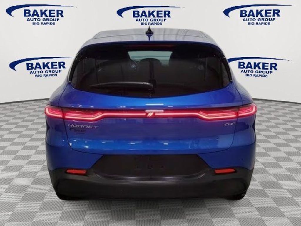2025 Dodge Hornet GT Plus AWD finished in bold Blu Bayou with a premium Black leather interior, delivering sporty performance, advanced technology, and all-weather confidence. Powered by a responsive 2.0L Hurricane turbocharged 4-cylinder engine with Stop/Start technology paired with a 9-speed automatic transmission, this Hornet offers exciting driving dynamics and everyday efficiency. Equipped with advanced safety features including Blind Spot and Cross-Path Detection, Full-Speed Forward Collision Warning with Pedestrian & Cyclist Emergency Braking, Lane Keep Assist, Adaptive Speed Control, Traffic Sign Recognition, ParkSense rear park assist, and a rear backup camera. Interior highlights include heated and ventilated front seats, heated steering wheel, power driver seat with memory, remote start, dual-zone automatic climate control, wireless charging, and Harman Kardon premium audio. Technology features include Uconnect 5 NAV with a 10.25-inch touchscreen, 12.3-inch digital instrument cluster, Apple CarPlay, Android Auto, Wi-Fi hotspot capability, and a hands-free power liftgate. Includes Dodges 5-year/60,000-mile Powertrain Limited Warranty.