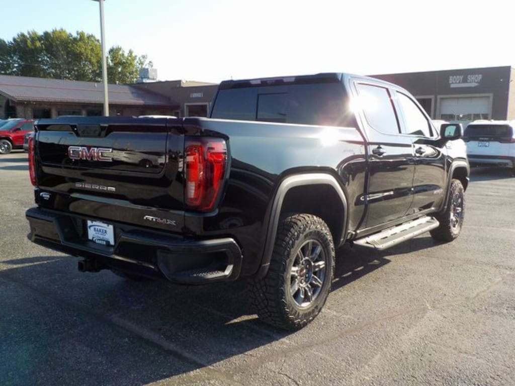 Sierra 1500 AT4X, 4D Crew Cab, EcoTec3 6.2L V8, 10-Speed Automatic, 4WD, Onyx Black, Obsidian Rush Leather, 120-Volt Bed Mounted Power Outlet, 120-Volt Interior Power Outlet, 2 Charge/Data USB Ports Inside Center Console, 2 Type-C Charge-Only Rear USB Ports, 2 USB Ports, Apple CarPlay/Android Auto, Bed View Camera, Bose Premium Series w/12-Speaker System, Color-Keyed Carpeting Floor Covering, Deep-Tinted Glass, Driver-Selectable Full-Locking Front Differential, Driver-Selectable Full-Locking Rear Differential, Electric Rear-Window Defogger, Floor-Mounted Center Console, Front Prem Floor Liners w/Removable Carpet Insert, Front Rain-Sensing Wipers, Gloss Black Header w/Drk Nickel Grille Insert Bars, HD Surround Vision, Heated 2nd Row Outboard Seats, Heated Driver & Front Outboard Passenger Seating, Heavy-Duty Air Filter, Hill Descent Control, Hitch Guidance, Hitch View, In-Vehicle Trailering System App, Integrated Trailer Brake Controller, Keyless Open & Start, LED Cargo Area Lighting, Multicolor 15 Diagonal Head-Up Display, MultiPro Tailgate Audio System by Kicker (LPO), OnStar Services Capable, Perimeter Lighting, Power Door Locks, Power Front Passenger Windows w/Express Up/Down, Power Front Windows w/Driver Express Up/Down, Power Rake & Telescoping Steering Column, Power Rear Windows w/Express Down, Power Sliding Rear Window w/Rear Defogger, Power Sunroof, Preferred Equipment Group 4SG, Push Button Start, Rear Cross Traffic Braking, Rear Pedestrian Detection, Rear Prem Floor Liners w/Removable Carpet Insert, Rear Wheelhouse Liners, Remote Vehicle Starter System, SiriusXM w/360L Trial Subscription, Spray-On Pickup Bedliner w/GMC Logo, Steering Wheel Audio Controls, Theft Deterrent System (Unauthorized Entry), Trailer Camera Provisions, Trailer Side Blind Zone Alert, Trailer Tire Pressure Monitor System, Trailering Package, Ultrasonic Front & Rear Park Assist, Universal Home Remote, Ventilated Driver & Front Passenger Seats, Wi-Fi Hotspot Capable, Wireless Charging.