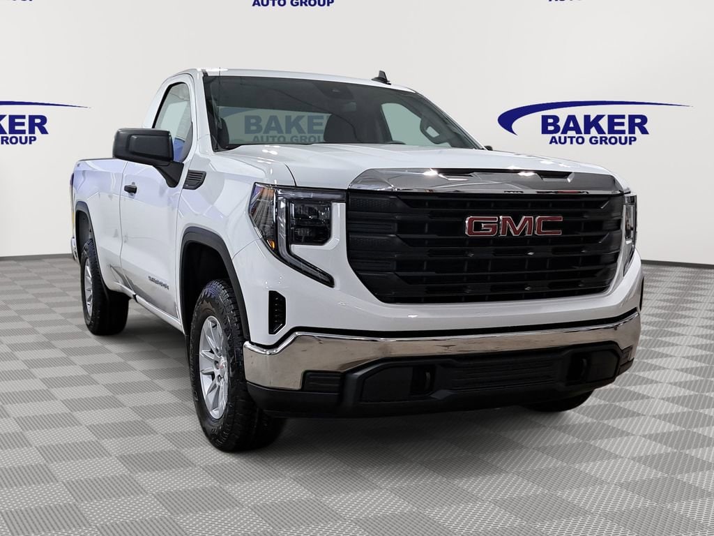 Summit White 2025 GMC Sierra 1500 Pro 4WD 10-Speed Automatic EcoTec3 5.3L V8 Sierra 1500 Pro, 2D Standard Cab, EcoTec3 5.3L V8, 10-Speed Automatic, 4WD, Summit White, Black Cloth, 2 Charge/Data USB Ports, 220 Amp Alternator, Chrome Header w/Flat Black Grille Insert Bars, Convenience Package, Deep-Tinted Glass, Electric Rear-Window Defogger, EZ Lift Power Lock & Release Tailgate, Front Frame-Mounted Black Recovery Hooks, HD Rear Vision Camera, Hitch Guidance, LED Cargo Area Lighting, OnStar Services Capable, Power Door Locks, Power Front Windows w/Driver Express Up/Down, Power Front Windows w/Passenger Express Down, Preferred Equipment Group 1SA, Pro Value Package, Push Button Start, Remote Keyless Entry, Solar Absorbing Tinted Glass, Standard Suspension Package, Trailering Package, Wi-Fi Hotspot Capable.