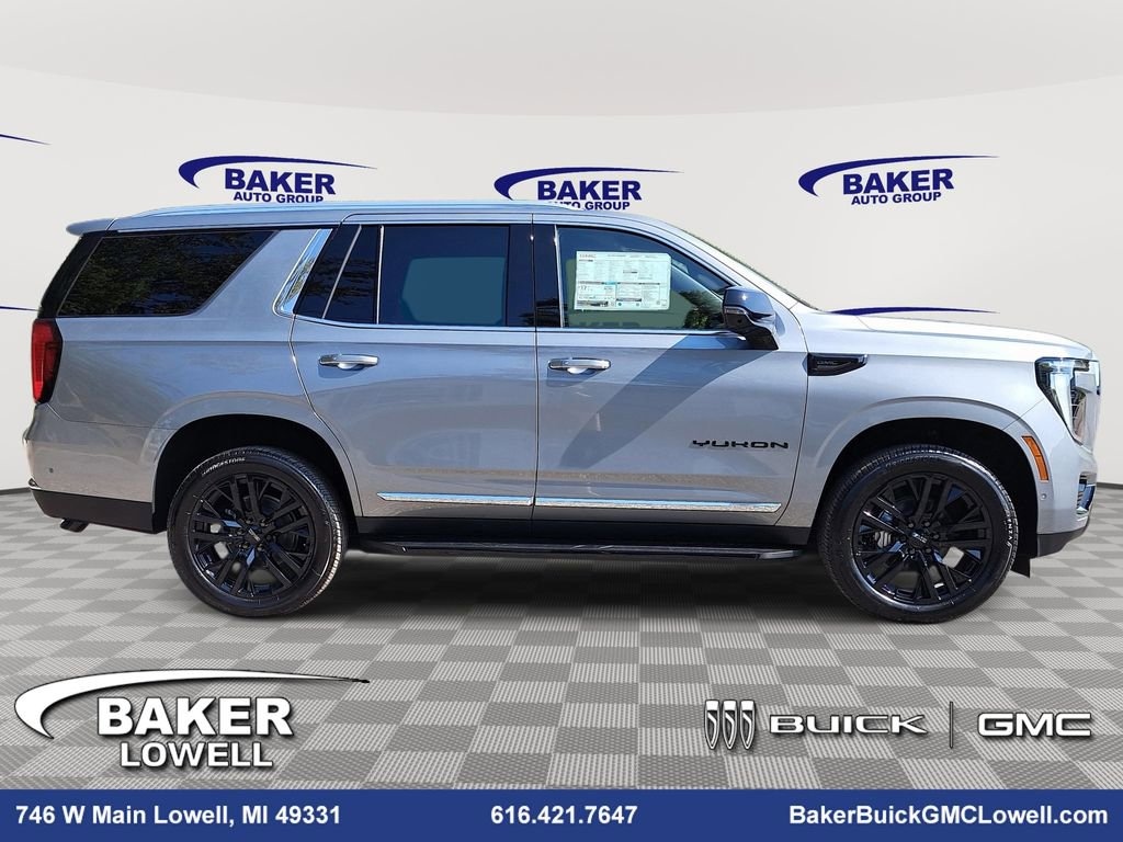Sterling Metallic 2025 GMC Yukon Elevation 4WD 10-Speed Automatic with Overdrive EcoTec3 5.3L V8 4WD, 1st & 2nd Rows All-Weather Floor Liners (LPO), 3rd Row All-Weather Floor Liners (LPO), 3rd row seats: split-bench, All-Weather Cargo Mat (LPO), Apple CarPlay/Android Auto, Auto High-beam Headlights, Auto-dimming door mirrors, Auto-dimming Rear-View mirror, Black Exhaust Tip (LPO), Black GMC Emblems (LPO), Black Mirror Caps (LPO), Black Nameplates (LPO), Bose 10-Speaker Surround w/CenterPoint, Bumpers: body-color, CoreTec/Perforated Leather-Appointed Seating, Emergency communication system: OnStar and GMC connected services capable, Exterior Parking Camera Rear, Floor Liner Package (LPO), Heated door mirrors, Heated Driver & Front Passenger Seats, Heated steering wheel, Memory seat, Power Liftgate, Power Release 2nd Row Bucket Seats, Preferred Equipment Group 4SA, Radio: 16.8 Diagonal Premium GMC Infotainment Sys, SiriusXM w/360L, Wheels: 22 Multi-Spoke Gloss Black (LPO), Yukon Black Package (LPO).