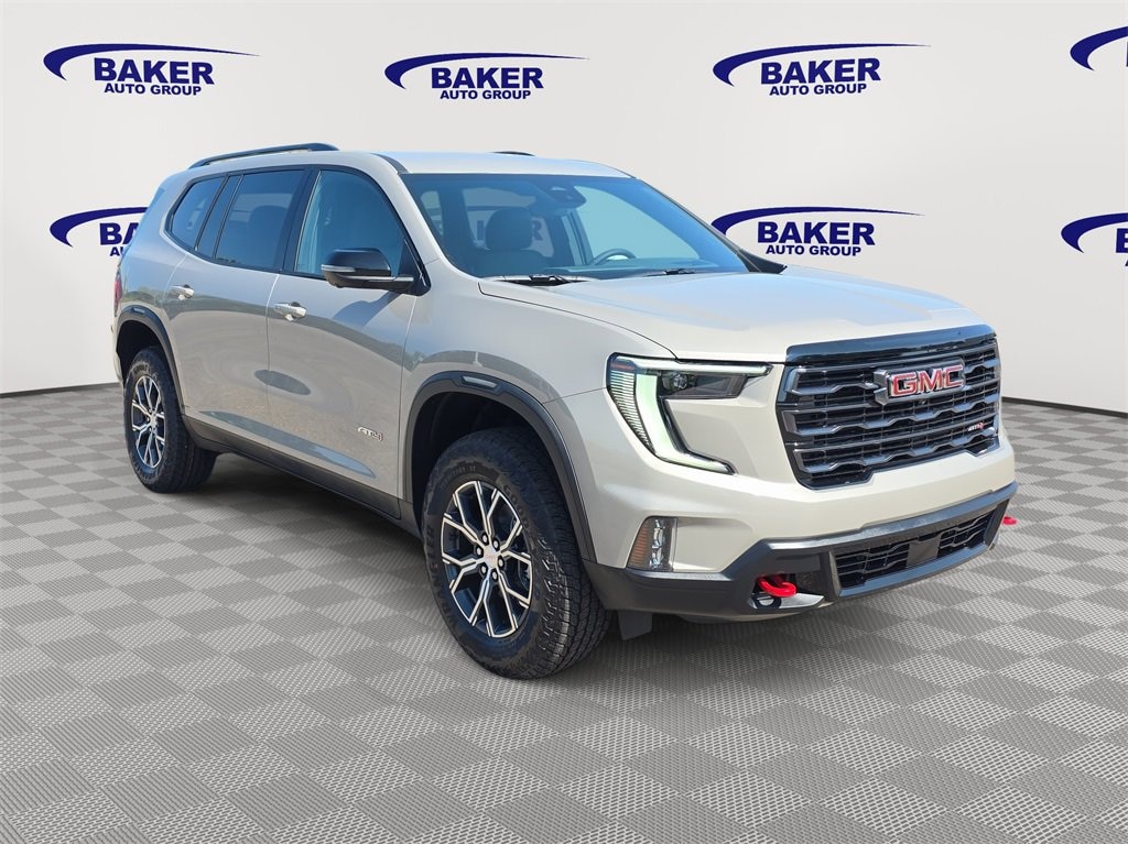 Riverstone Metallic 2026 GMC Acadia AT4 AWD 8-Speed Automatic 2.5L DOHC Acadia AT4, 4D Sport Utility, 2.5L DOHC, 8-Speed Automatic, AWD, Riverstone Metallic, Forest Storm W/Mahogany Accents Cloth, 1st & 2nd Row All-Weather Floor Liner (LPO), 3rd Row All-Weather Floor Liner (LPO), Floor Liner Package (LPO), Integrated Cargo Liner (LPO), Navigation System, Preferred Equipment Group 4SB.