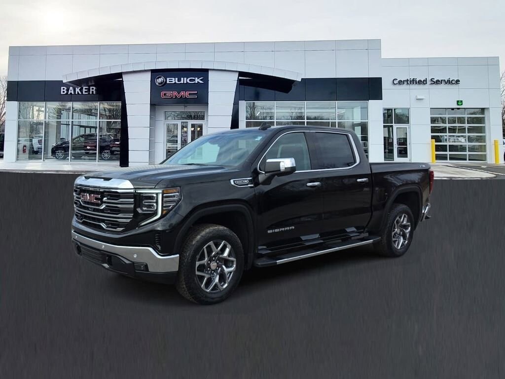 Onyx Black 2026 GMC Sierra 1500 SLT 4WD 10-Speed Automatic EcoTec3 5.3L V8 10-Speed Automatic, 4WD, Jet Black Leather.