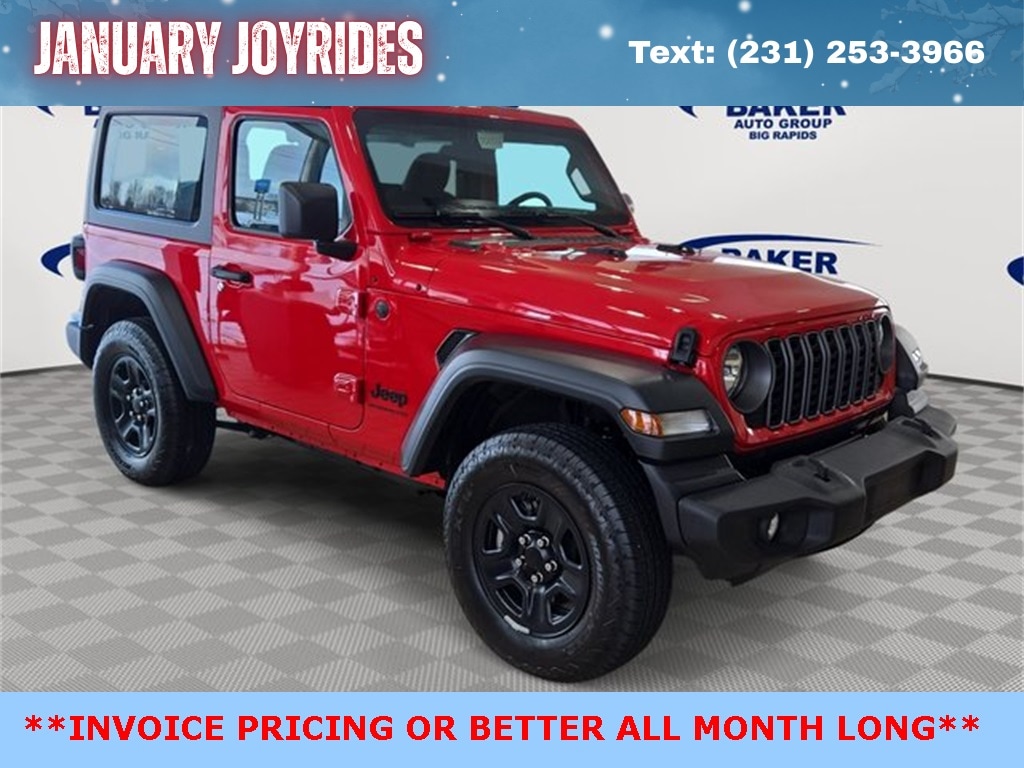 Firecracker Red Clearcoat 2026 Jeep Wrangler Sport 4WD 8-Speed Automatic 2.0L I4 DOHC 7 & 4 Pin Wiring Harness, ABS brakes, Auxiliary Switches, Class II Receiver Hitch, Compass, Electronic Stability Control, Illuminated entry, Low tire pressure warning, ParkView Rear Back-Up Camera, Quick Order Package 22B Sport, Remote keyless entry, Traction control, Trailer Tow & Aux Switch Group.