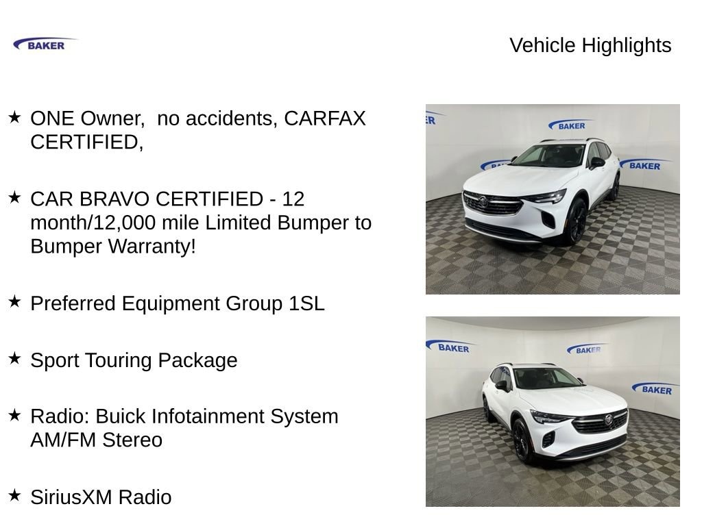 New Price! Summit White 2023 Buick Envision Essence AWD 9-Speed Automatic 2.0L Turbocharged ONE Owner, no accidents, CARFAX CERTIFIED,, CAR BRAVO CERTIFIED - 12 month/12,000 mile Limited Bumper to Bumper Warranty!, Envision Essence, 2.0L Turbocharged, 9-Speed Automatic, AWD, Summit White, Ebony Seats Leather, 7-Speaker Audio System Feature w/Amplifier, 8-Way Power Driver Seat Adjuster, Apple CarPlay/Android Auto, Automatic Emergency Braking, Automatic temperature control, Black Roof Rails, Body-Color Door Handles, Following Distance Indicator, Forward Collision Alert, Front Bin Center Console USB Ports, Front dual zone A/C, Front Passenger 8-Way Power Seat Adjuster, Front Pedestrian Braking, Heated front seats, Heated steering wheel, Lane Keep Assist w/Lane Departure Warning, Lower Trim/Wheel Arch Moldings, Memory seat, Power driver seat, Power Liftgate, Power Panoramic Tilt-Sliding Moonroof, Power passenger seat, Preferred Equipment Group 1SL, Radio: Buick Infotainment System AM/FM Stereo, Rear Cargo Compartment Cover, SiriusXM Radio, Sport Alloy Pedals, Sport Touring Package, USB Charging-Only Ports, Wheels: 20 Aluminum w/Dark Finish, Wireless Apple CarPlay/Wireless Android Auto.
