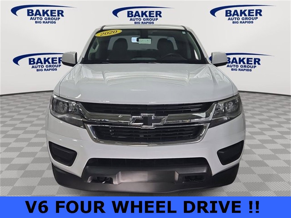 Summit White 2020 Chevrolet Colorado Work Truck 4WD 8-Speed Automatic V6 LOCAL TRADE, NON SMOKER, DETAILED, OIL CHANGE, NO ACCIDENT AUTO CHECK, 4WD, Apple CarPlay/Android Auto, Black Bowtie Emblem Package (LPO), Body-Color Door Handles, Chrome Beltline Moldings, Electronic Automatic Cruise Control, Extended Range Remote Keyless Entry, EZ-Lift & Lower Tailgate, Heavy-Duty Trailering Package, Outside Power-Adjustable Body-Color Mirrors, Power driver seat, Preferred Equipment Group 4WT, Rear Body-Color Bumper, Remote Locking Tailgate, Spotter Mirror, Unauthorized Entry Theft-Deterrent System, Wheels: 16 x 7 Ultra Silver Metallic Cast Alloy, Work Truck Appearance Package, WT Convenience Package.