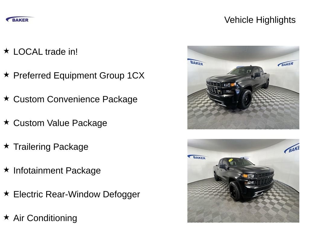 Black 2020 Chevrolet Silverado 1500 Custom 4WD 6-Speed Automatic Electronic with Overdrive EcoTec3 4.3L V6 LOCAL trade in!, Silverado 1500 Custom, EcoTec3 4.3L V6, 6-Speed Automatic Electronic with Overdrive, 4WD, Black Cloth, 170 Amps Alternator, Air Conditioning, Apple CarPlay/Android Auto, Bluetooth® For Phone, Body Color Grille, Custom Convenience Package, Custom Value Package, Electric Rear-Window Defogger, Exterior Parking Camera Rear, EZ Lift Power Lock & Release Tailgate, Front Frame-Mounted Recovery Hooks, Front Rubberized Vinyl Floor Mats, Hitch Guidance, Infotainment Package, Power Door Locks, Preferred Equipment Group 1CX, Rear 60/40 Folding Bench Seat (Folds Up), Rear Rubberized-Vinyl Floor Mats, Remote Keyless Entry, Steering Wheel Mounted Electronic Cruise Control, Trailering Package, Wheels: 20 x 9 Bright Silver Painted Aluminum.CALL US TODAY 6168373800. Recent Arrival!