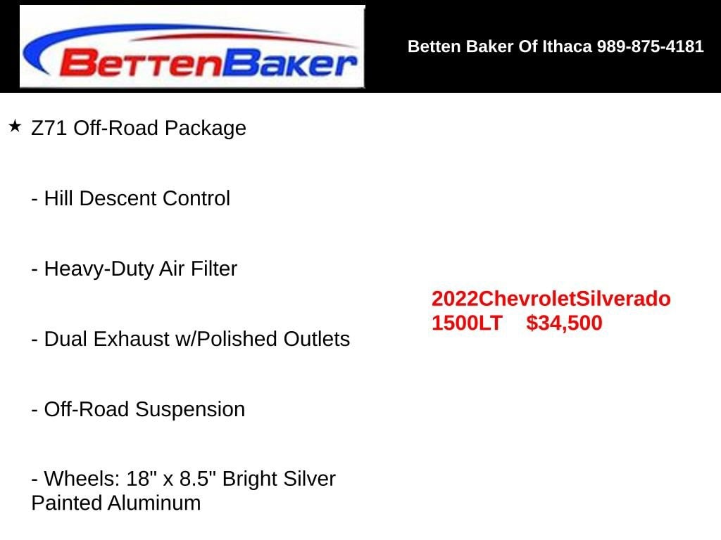 New Price! Dual Exhaust w/Polished Outlets, Heavy-Duty Air Filter, Hill Descent Control, Off-Road Suspension, Wheels: 18 x 8.5 Bright Silver Painted Aluminum, Z71 Off-Road Package.