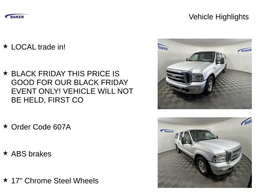 New Price! Silver Clearcoat Metallic 2005 Ford F-250SD XLT RWD TorqShift 5-Speed Automatic with Overdrive Power Stroke 6.0L V8 DI 32V OHV Turbodiesel LOCAL trade in!, BLACK FRIDAY THIS PRICE IS GOOD FOR OUR BLACK FRIDAY EVENT ONLY! VEHICLE WILL NOT BE HELD, FIRST CO, F-250 SuperDuty XLT, Power Stroke 6.0L V8 DI 32V OHV Turbodiesel, TorqShift 5-Speed Automatic with Overdrive, RWD, Silver Clearcoat Metallic, 17 Chrome Steel Wheels, ABS brakes, Order Code 607A.