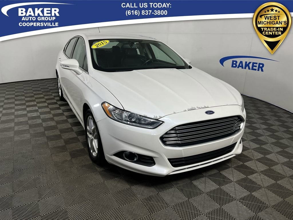 White Platinum Clearcoat Metallic 2015 Ford Fusion SE FWD 6-Speed Automatic 1.5L EcoBoost LOCAL trade in!, Fusion SE, 1.5L EcoBoost, FWD, 17 Painted Aluminum Wheels, Auto-Dimming Driver Side Mirror, Auto-Dimming Rear-View Mirror, Chrome Moldings Around Window, Equipment Group 202A, Exterior Parking Camera Rear, Fog Lamps, Luxury Package, Power driver seat, Power passenger seat, SYNC Communications & Entertainment System, Warm Interior Accents.