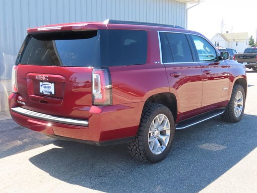 Red SLE2019 GMC Yukon 4WD EcoTec3 5.3L V8Baker GMC of Cadillac is proud to offer Premium Select Pre-Owned Vehicles! We research history, analyze condition, and select only the best vehicles for our inventory. They have been fully inspected by our manufacturer certified technicians, meticulously detailed by our experienced professionals, and offered to you at competitive prices for an outstanding value! We stand behind what we sell.