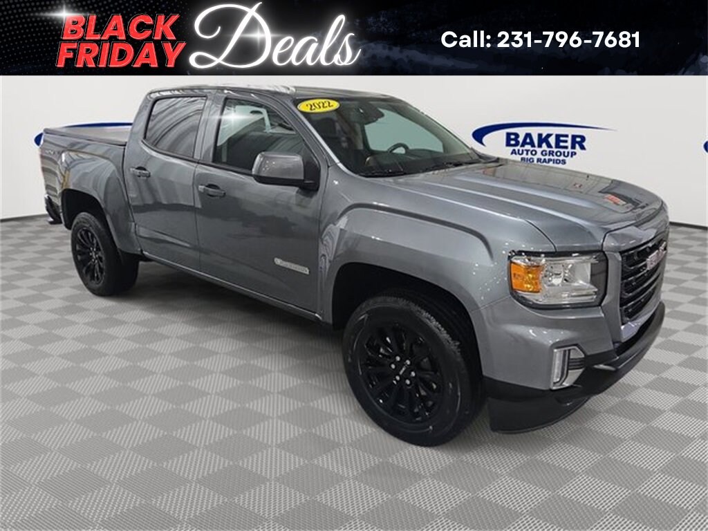 Satin Steel Metallic 2022 GMC Canyon Elevation 4WD 8-Speed Automatic V6 LOCAL TRADE, NON SMOKER, DETAILED, OIL CHANGE, APPLE CARPLAY, ANDROID AUTO, 1 OWNER, NO ACCIDENT AUTO CHECK, **BALANCE OF FACTORY WARRANTY**, 4WD, Apple CarPlay/Android Auto, Driver 6-Way Power Seat Adjuster, Power driver seat, Trailering Package.Recent Arrival! Odometer is 11294 miles below market average!CALL 231-796-7681 TO SCHEDULE YOUR TEST DRIVE TODAY!