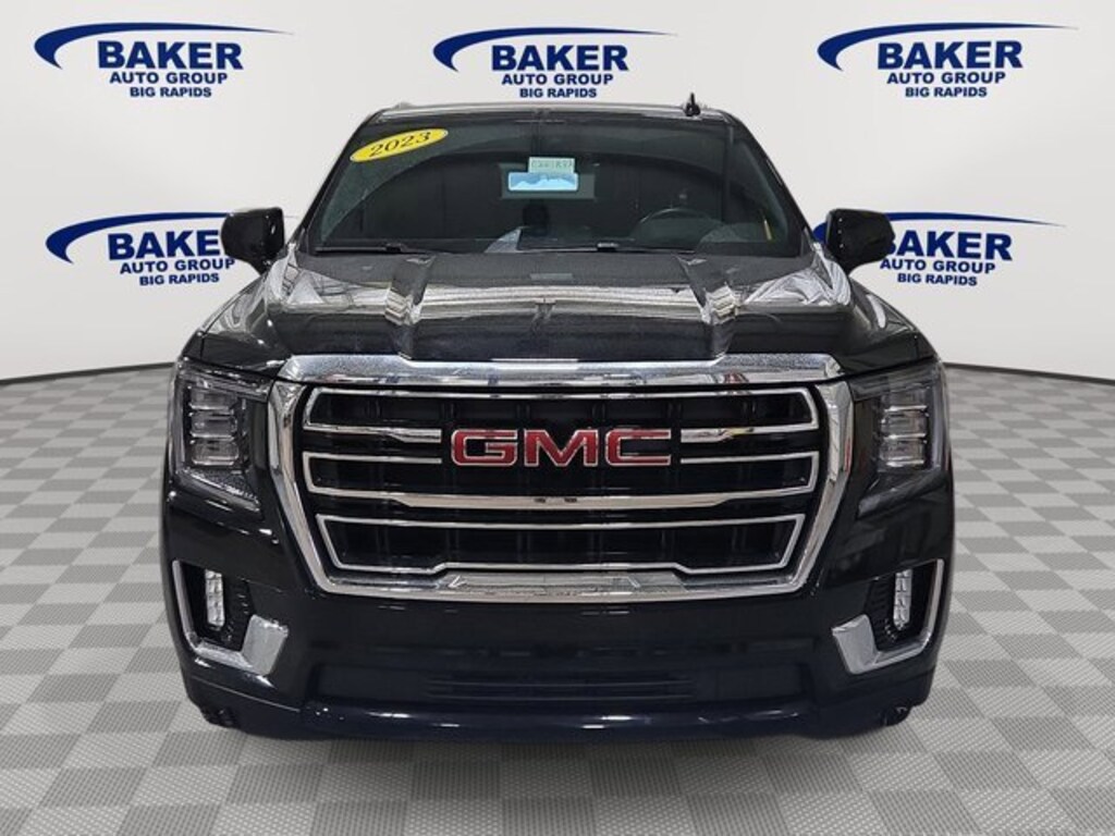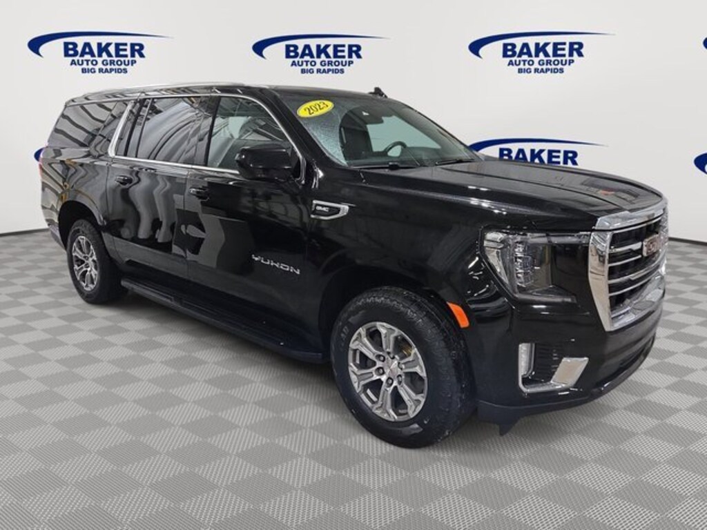 Onyx Black 2023 GMC Yukon XL SLE 4WD 10-Speed Automatic with Overdrive EcoTec3 5.3L V8 LOCAL TRADE, NON SMOKER, DETAILED, OIL CHANGE, NEW TIRES, APPLE CARPLAY, ANDROID AUTO, 1 OWNER, NO ACCIDENT AUTO CHECK, ALL-WHEEL-DRIVE, 4WD, Apple CarPlay/Android Auto, Front dual zone A/C, Navigation System, Power driver seat, Preferred Equipment Group 3SA.Recent Arrival!CALL 231-796-7681 TO SCHEDULE YOUR TEST DRIVE TODAY!