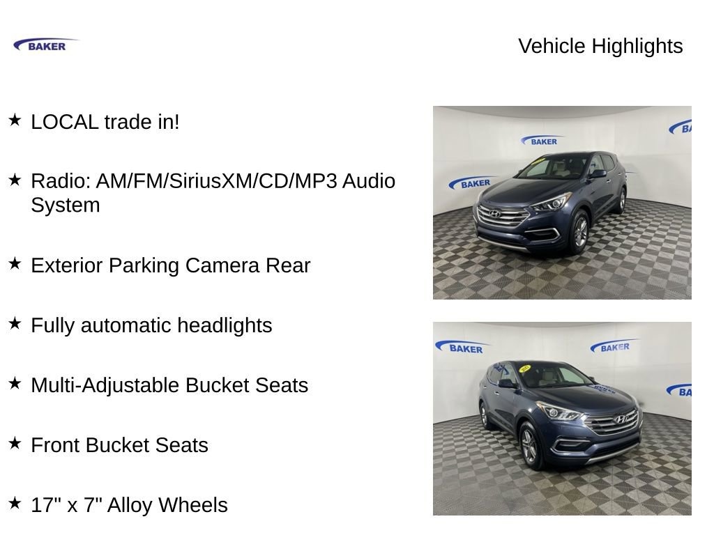 New Price! Marlin Blue 2017 Hyundai Santa Fe Sport 2.4 Base AWD 6-Speed Automatic with Shiftronic 2.4L I4 DGI DOHC 16V LOCAL trade in!, Santa Fe Sport 2.4 Base, 2.4L I4 DGI DOHC 16V, 6-Speed Automatic with Shiftronic, AWD, Marlin Blue, Beige Cloth, 17 x 7 Alloy Wheels, Exterior Parking Camera Rear, Front Bucket Seats, Fully automatic headlights, Multi-Adjustable Bucket Seats, Radio: AM/FM/SiriusXM/CD/MP3 Audio System.