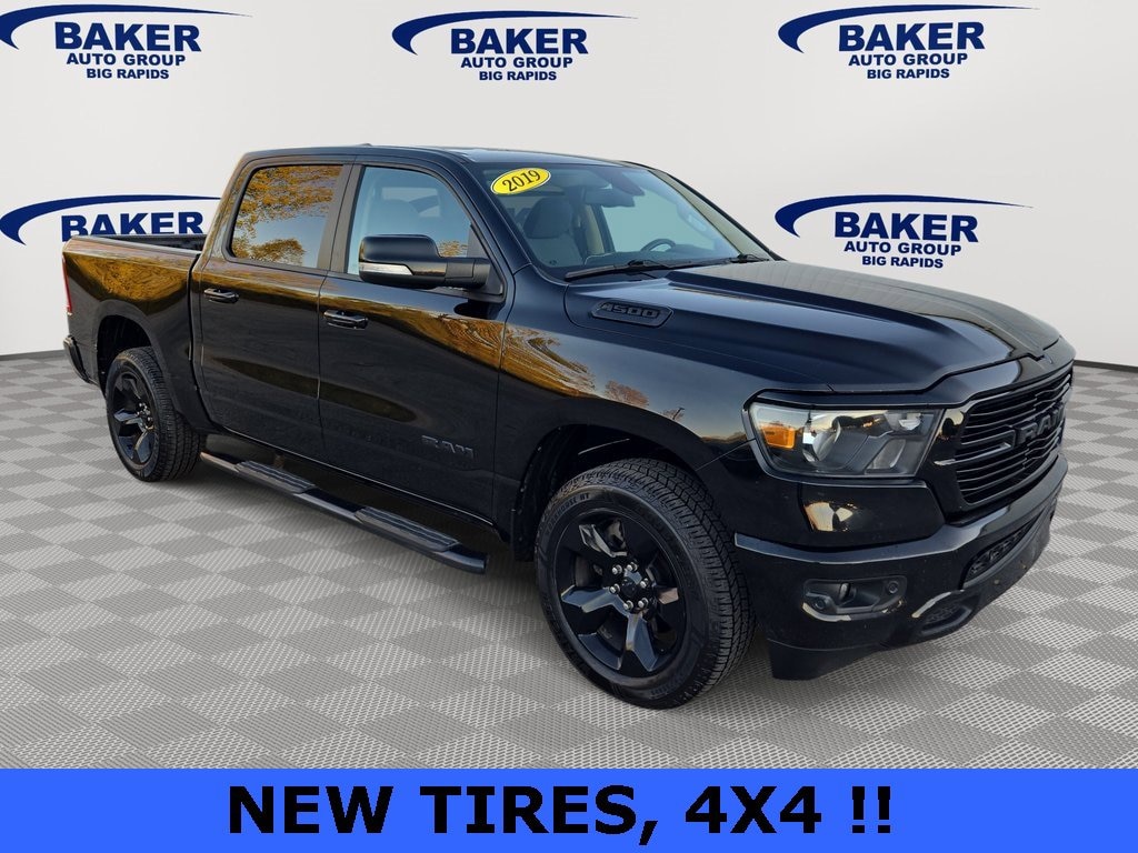 Diamond Black Crystal Pearlcoat 2019 Ram 1500 Big Horn/Lone Star 4WD 8-Speed Automatic HEMI 5.7L V8 Multi Displacement VVT LOCAL TRADE, NON SMOKER, DETAILED, OIL CHANGE, APPLE CARPLAY, ANDROID AUTO, 1-Year SiriusXM Radio Service, 2 USB Full Function/Charge Only Media Hub, 3 Rear Seat Head Restraints, 4 Way Front Headrests, 8.4 Touchscreen Display, Air Conditioning ATC w/Dual Zone Control, Apple CarPlay, Auto-Dimming Exterior Driver Mirror, Auto-Dimming Rear-View Mirror, Big Horn IP Badge, Big Horn Non-BSG Level 2 Group w/Media Hub (DISC), Black Appearance Package, Black Exterior Truck Badging, Black Headlamp Bezels, Black Interior Accents, Body Color Door Handles, Body Color Front Bumper, Body Color Rear Bumper w/Step Pads, Bucket Seats, Center Console Parts Module, Class IV Receiver Hitch, Cluster 7.0 TFT Color Display, Dampened Tailgate, Deluxe Cloth Bucket Seats, Dual Exhaust w/Black Tips, Exterior Mirrors Courtesy Lamps, Exterior Mirrors w/Memory, Exterior Mirrors w/Supplemental Signals, Foam Bottle Insert (Door Trim Panel), For More Info, Call 800-643-2112, Front Seat Back Map Pockets, Full Length Floor Console, Glove Box Lamp, Google Android Auto, Grille B/Color Outline 1 Texture 2, Heated Front Seats, Heated Steering Wheel, Integrated Center Stack Radio, Manual Adjust 4-Way Front Passenger Seat, ParkSense Front/Rear Park Assist w/Stop, Power 4-Way Driver Lumbar Adjust, Power 8-Way Driver Seat, Power Adjustable Pedals, Power Heated Fold Away Mirrors, Power Heated Fold-Away Mirrors, Power-Folding Mirrors, Quick Order Package 25Z Big Horn/Lone Star, Radio: Uconnect 4 w/8.4 Display, Rear 60/40 Folding Seat, Rear Dome w/On/Off Switch Lamp, Rear Power Sliding Window, Rear Window Defroster, Remote Start System, Security Alarm, Single Disc Remote CD Player, SiriusXM Satellite Radio, Steering Wheel Mounted Audio Controls, Sun Visors w/Illuminated Vanity Mirrors, Universal Garage Door Opener, Wheels: 20 x 9 Cast Aluminum Black.