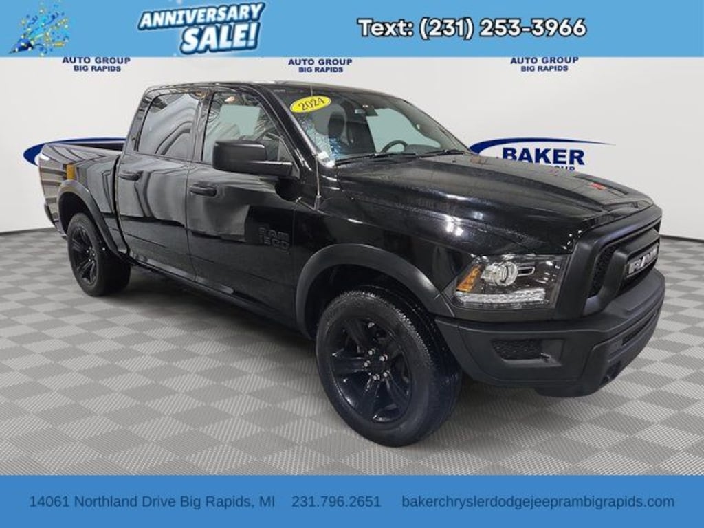 Conquer every road with this 2024 RAM 1500 Classic Warlock Crew Cab 4x4, featuring a 3.6L V6 24V VVT engine paired with an 8-speed automatic transmission for smooth, powerful towing and hauling. Designed for performance and rugged style, this truck comes equipped with the Warlock Package, raised ride height, and heavy-duty rear shocks for confidence on and off the road.